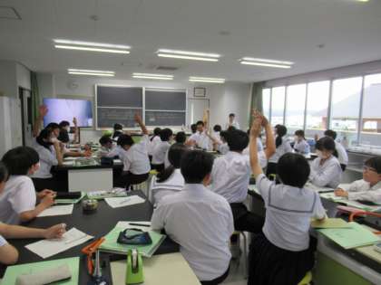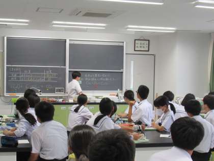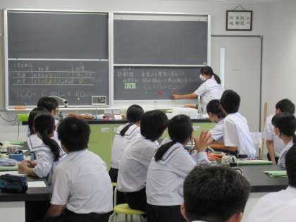 6月12日(月) 2年生 理科 化学反応式 公開日 2023/06/12 更新日 2023/06/12 八尾中学校のページ たくさんの手が挙がっています。 「チャンスだよ」という先生の声に刺激を受けて「チャレンジ」しています。