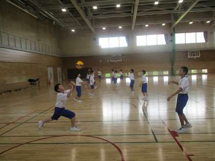 バレーボールの基本、パスが正確にできるよう、練習に励んでいます。