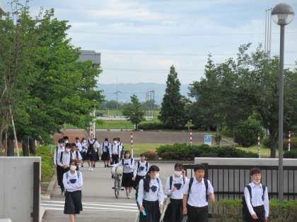 6月13日(火) 朝の風景 公開日 2023/06/13 更新日 2023/06/13 八尾中学校のページ 夏を思わせる入道雲です。 今日は、「学校訪問」という教員研修のため、県や市の教育委員会から多くの方が来校されます。生徒は、給食後放課となります。そのせいか、荷物も気持ちも軽いように見えます。 水やりをありがとう。