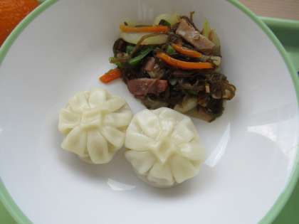「チャプチェ」は、漢字では「雑菜(チャプチェ)」と書き、「雑(チャプ)」は混ぜ合わせる、「菜(チェ)」はおかずという意味です。春雨の他、ピーマン、にんじん、赤パプリカ等彩り豊かな野菜やきのこ、牛肉の細切り等、様々な具材を使った甘辛い味付けの炒め物です。