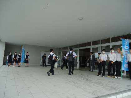 6月14日(水) 八尾学園あいさつ運動 その1 公開日 2023/06/14 更新日 2023/06/14 八尾中学校のページ 14日(水)、15日(木)の2日間、幼小中高連携事業(八尾学園)あいさつ運動を実施します。 本日は、朝から八尾高校の生徒8名が来校し、元気な声が生徒玄関に響いていました。
