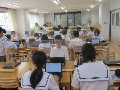 6月15日(木) 2年生 国語 「職業ガイド」をつくろう 公開日 2023/06/15 更新日 2023/06/15 八尾中学校のページ 図書室で書籍やクロムブックを使い、興味・関心のある職業を調べ、職業ガイドを作っています。「社会に学ぶ『14歳の挑戦』」を控え、生徒はとても意欲的です。