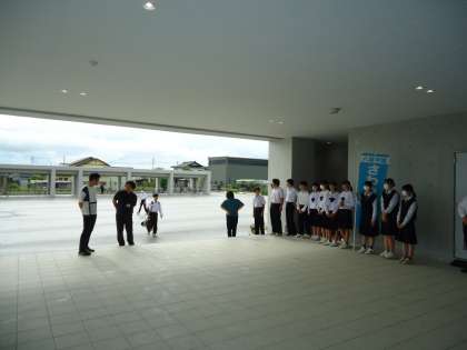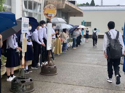 昨日に引き続き、八尾高校の生徒が本校の生徒玄関前で、本校生徒は八尾高校前であいさつ運動を行いました。