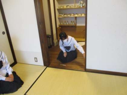 講師の先生から、部屋の出入りの仕方等について教わっています。