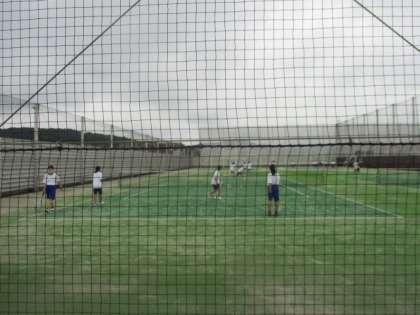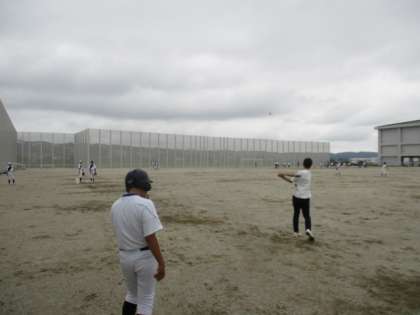 ソフトテニス部と野球部が調整練習をしています。