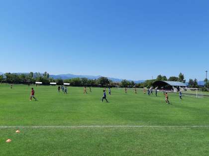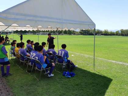 サッカー部は、昨日1回戦勝利し、今日は呉羽中と対戦しています。前半終了、0−2でリードされています。後半に期待します。