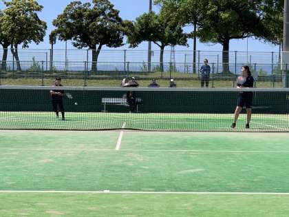 6月17日(土) 市総合選手権大会 2日目 女子ソフトテニス競技 その1 公開日 2023/06/17 更新日 2023/06/17 部活動 今日は、個人戦です。 2ペアは、初戦で敗退しましたが、M・Iペアが興南中のペア相手に4-3で勝利しました。 この後、2回戦に挑みます。