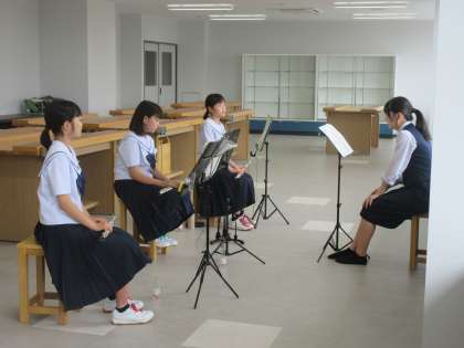 吹奏楽部も負けていられません。今日は各パートの先生方に来ていただいで、レッスンを受けています。来月に迫ったコンクールに向けて、期末考査前の貴重な時間です。時間を無駄にしないように、先生の話を聞いてたくさん吸収します!