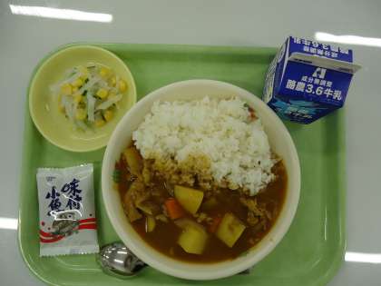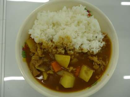 給食のカレーライスには、にんにくと生姜がたっぷり使われています。にんにくと生姜をみじんぎりにして、油で炒めます。そこに肉や野菜等の具材を入れて炒めカレーを作ります。隠し味に、ウスターソースやしょうゆも使われていて、コクのある味に仕上げてあります。美味しさの秘密はそこに?!