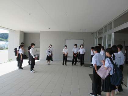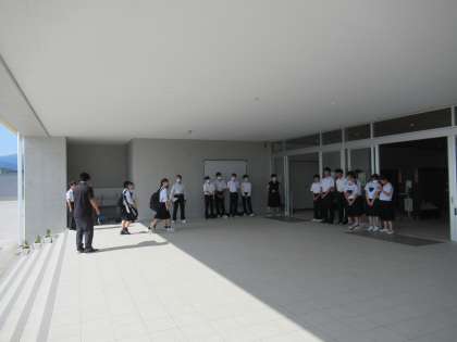 5月にクラスごとのあいさつ運動を行い、その後もあいさつ運動を「つなごう」と、生徒会執行委員会が毎朝玄関前であいさつ運動を続けていました。