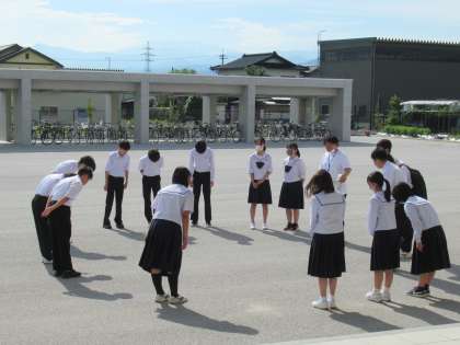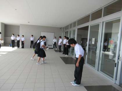 お辞儀付きの挨拶ができる素敵な生徒もいます。1学期終業式前日まであいさつのバトンを「つなぎ」ます。