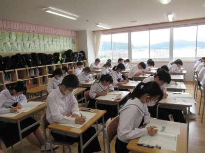 3年生は、社会、保健体育、国語の3教科のテストに挑んでいます。