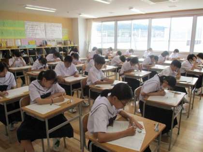 1年生は、数学、保体、社会の3教科のテストに挑みます。