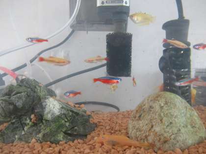 1年3組の魚たちは、宿泊学習中教室でお留守番しています。