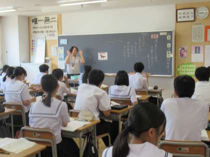 写真下は、国語の授業の様子です。俳句に使われる言葉から情景を思い浮かべています。