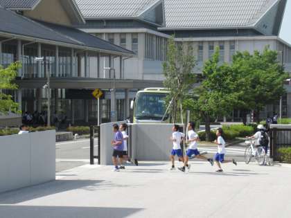 校舎の外周をランニング中です。
