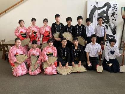 郷土芸能部が観光会館で行われた発表会に、小学生、高校生と共に出演しました。