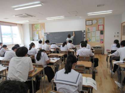 写真上は、理科、写真下は国語の授業です。集中して取り組んでいます。