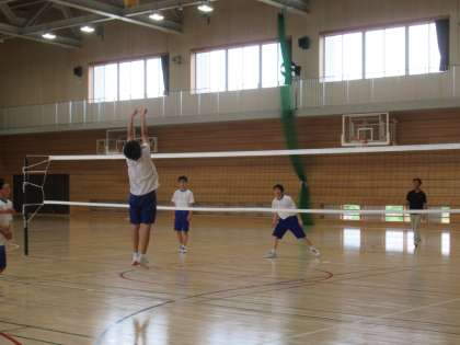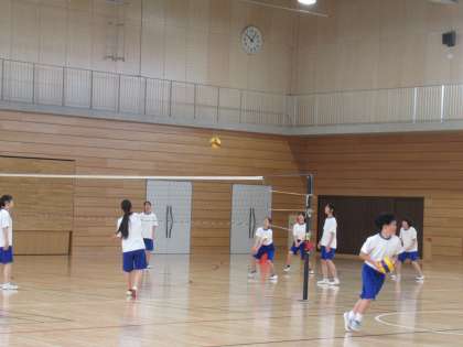 ローテーションしながら、試合形式でバレーボール競技に取り組んでいます。