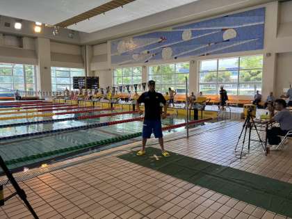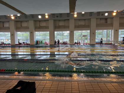 水泳部Mさんは、なんと!200m背泳ぎで標準記録を突破し、全中へ進出を決めました!