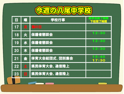 7月17日(月) 今週の八尾中学校