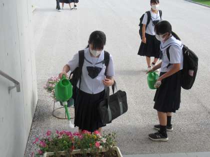 教室前のベンチでくつろぐ姿、登校後荷物も置かずに花の水やりをする姿、、、どれも素敵です。