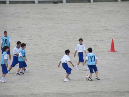 試合形式でミニゴールでサッカー競技に取り組んでいます。