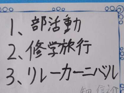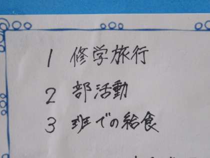 班で食べる給食がランクインしている生徒もいます。班になって食べる給食を待っていた生徒の気持ちが伝わってきます。