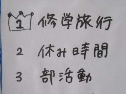 休み時間がランクインしている生徒もいます。3年生にとっては、最後の1年間。ひとつひとつが思い出ですね。