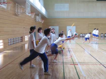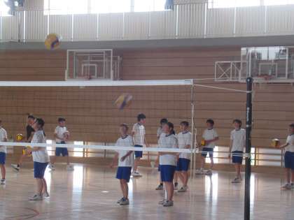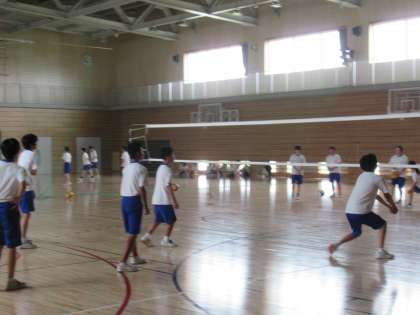 サーブの練習をしたり、ネットを挟んでパスの練習をしたりしています。