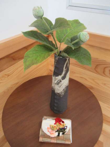 紫陽花の季節もそろそろ終わりを迎えていますが、珍しい花ですね。助手さんがいつも生けてくださっています。