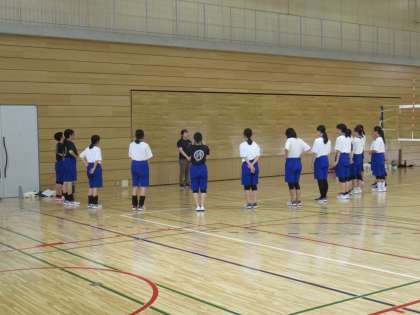 体育館へ来られた先生には、部長の号令のもと、全員で大きな声で挨拶をしています。