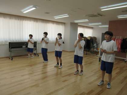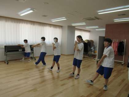 演奏だけではありません。途中ダンスも披露するので、ダンスチームも演奏の合間に、郷土芸能室でダンス練習に励んでいます。