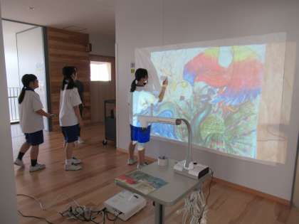 美術室前では、体育大会のデコレーションの下絵を描いています。