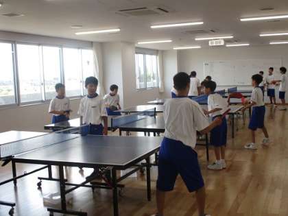 集会室では卓球部が練習をしています。俊敏な動きです。