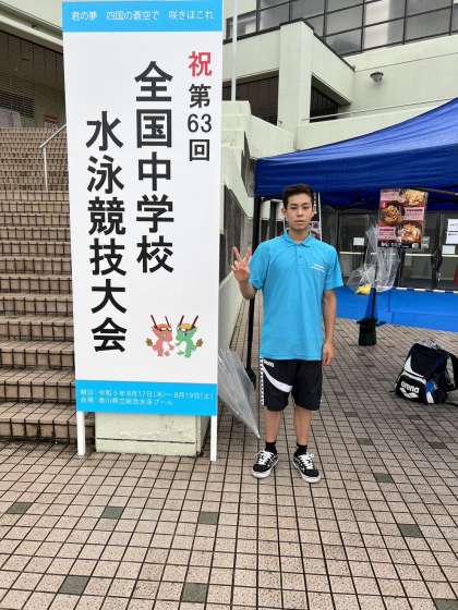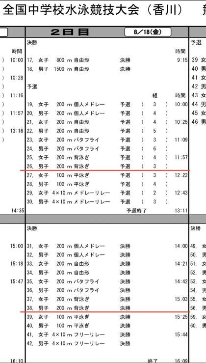 気合い十分!ベストコンディションで大会に臨みます。200メートル背泳ぎに出場します。レースは、12時頃の予定です。