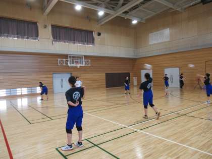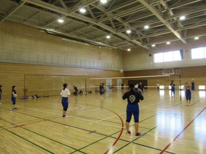体育館では、バレーボール部と女子バスケットボール部が練習しています。