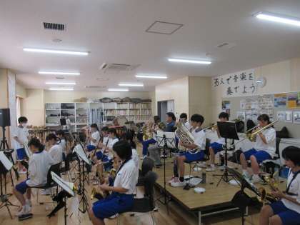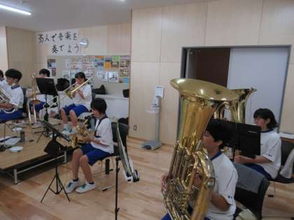 講師の先生の指導の下、音出しの練習をしています。基礎練習が大切です!