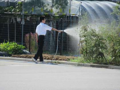 Farmの水やりをしている生徒、朝のリーダーミーティングをしている生徒、、、いつもの日常がスタートしています。