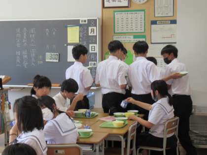 久しぶりの給食、みんなと食べると一段と美味しいですね。