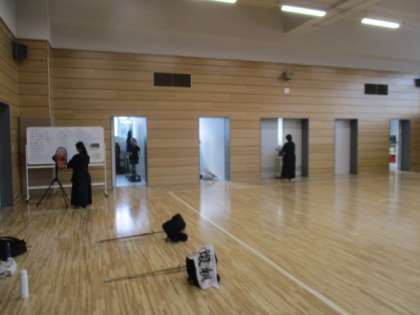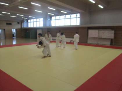 柔剣道場では、休憩を挟みながら柔道部、剣道部が頑張っています。