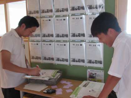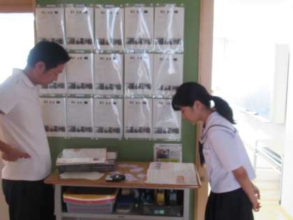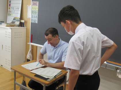 教室内では、一人一人ALTのJ先生に原稿を見ていただいています。