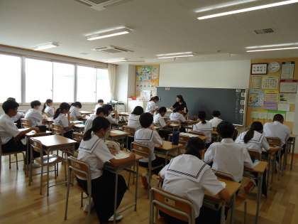 写真上は、数学の授業の様子です。夏休み明けテストが返却されています。間違いをしっかり確認しましょう。