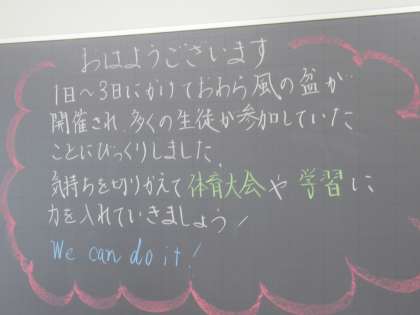 疲れている様子も見られますが、学習に集中して取り組んでいます。3年生は、次は体育大会に向けて力を発揮するときですね。
