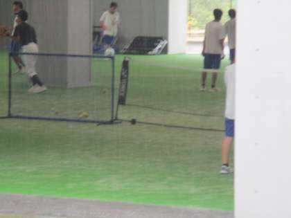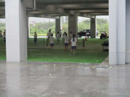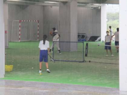 突然の雨のため、サッカー部、野球部、ソフトテニス部は、ピロティへ避難しました。