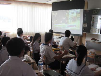 昨日は「八尾高校」の紹介映像を視聴しました。今朝は「富山高校」の紹介映像を視聴しています。富山高校は、ダンス部と食堂の紹介をしていました。生徒は興味津々で見入っています。