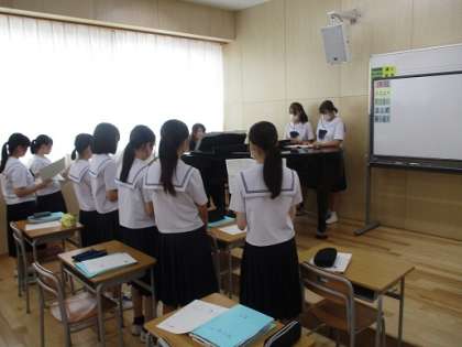 9月8日(金) 3年生 音楽 合唱コンクールに向けて 公開日 2023/09/08 更新日 2023/09/08 八尾中学校のページ 10月に行われる合唱コンクールに向け、練習をしています。 写真は、3つのパートに分かれて練習している様子です。美しいハーモニーになるよう、また、他のパートにつられないように歌い込んでいます。