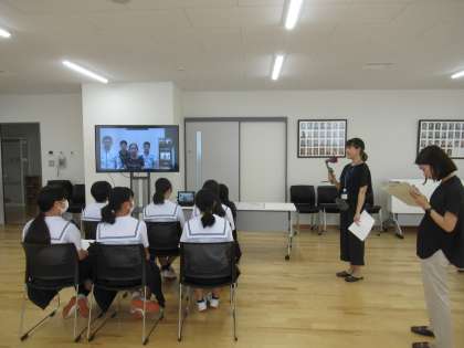 9月11日(月) 2年生 パラグアイの学校とオンライン交流 その1 公開日 2023/09/11 更新日 2023/09/11 八尾中学校のページ JAICA(ジャイカ)の方とのつながりのおかげで、パラグアイの学校とオンライン交流をする機会を得ました。 パラグアイの日本語学校でおわらを指導され、踊ったという新聞記事からのつながりです。 本場のおわらを踊って見せてあげたり、文化の交流をしたりしました。