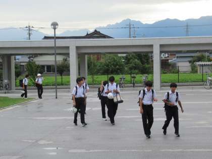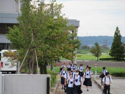 9月12日(火) 朝のルーティン 公開日 2023/09/12 更新日 2023/09/12 八尾中学校のページ 日中はまだまだ暑いですが、朝夕は涼しくなりました。 今朝は曇り空、昨夜の雨のおかげで、涼しい朝を迎えています。 写真上は、スクールバスが到着し、学校に向かう様子です。 写真中は、駐輪場から生徒玄関に向かう様子です。 写真下は、水まきをしている様子です。 朝の素敵なルーティン
