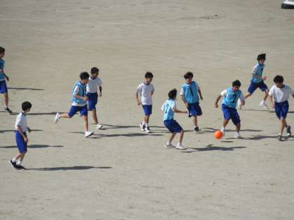 1限目からグラウンドでボールを追いかけています。元気いっぱいです。